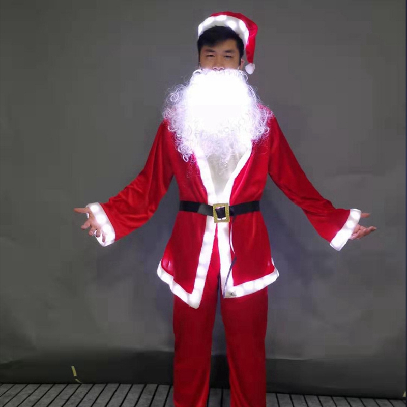 Key words:led santa claus cosplay costume with glowing hat and beard